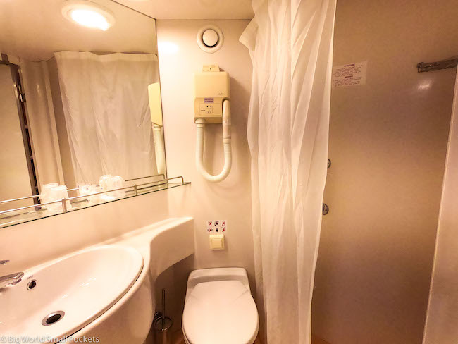 Cabin rooms are separated by gender (if you book a shared one – privates are available too fyi) and comprise of 4 beds (2 fold-down ones above) and an ensuite bathroom with a shower.